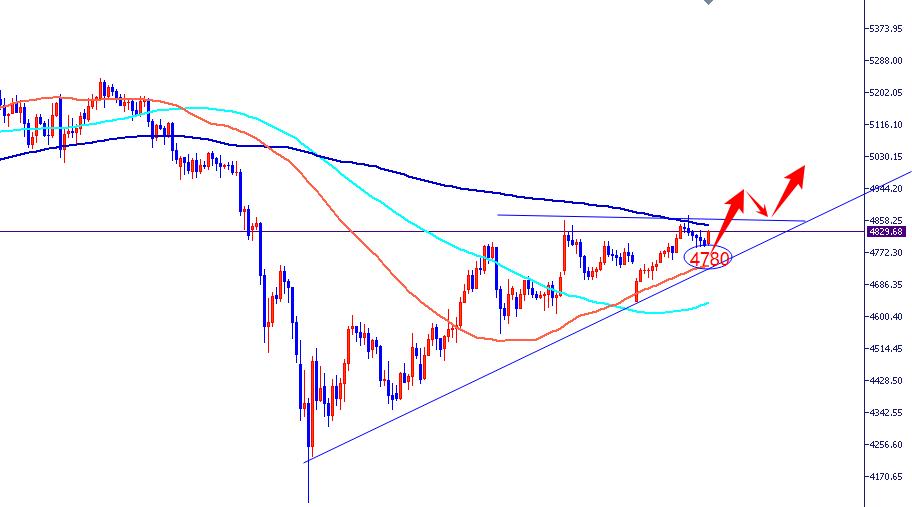 阻力位: 激进:4850-56,稳健:4874-80,极限:4898-4906;