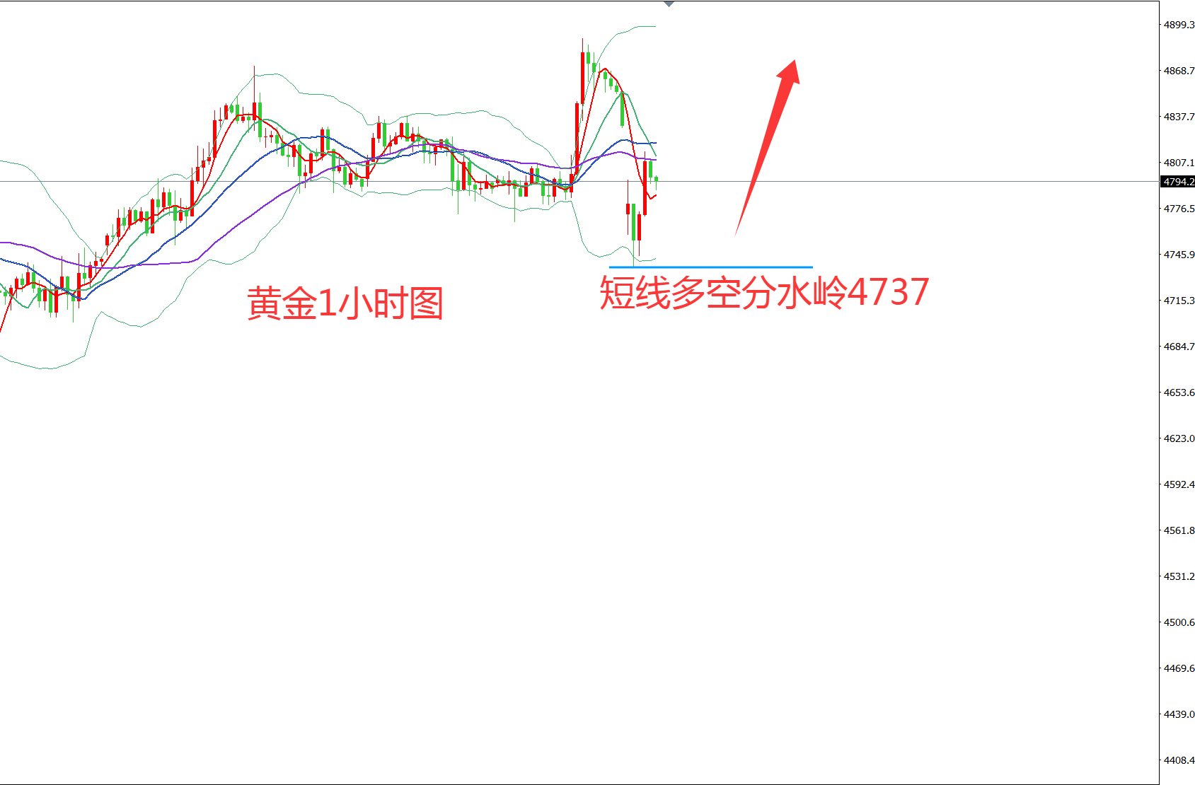 经过周五的黄金大涨和早盘的跳水低开高跑黄金的指标早已经脱离了,现在用指标去参考支撑和趋势已经不正确了,可以多参考下形态的支撑和压制,今天的思路的亚盘和美盘我们看一个修复,老古预估修复的区间是4750-4850,早盘4小时出现了大阳,现在要先看一波大的反弹,反弹的极限应该在4850-4860附近,这个位置的压制严重,白盘的小支撑是4780附近,依托这个小支撑先多。