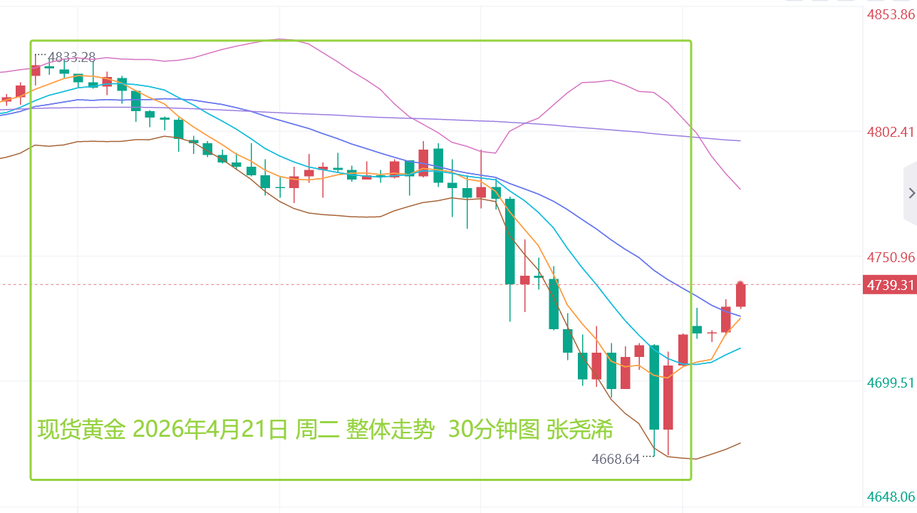 一句话看懂黄金Gold:短线下跌后的局部反弹力度较强,但尚未转为上行,走势仍将反复。
