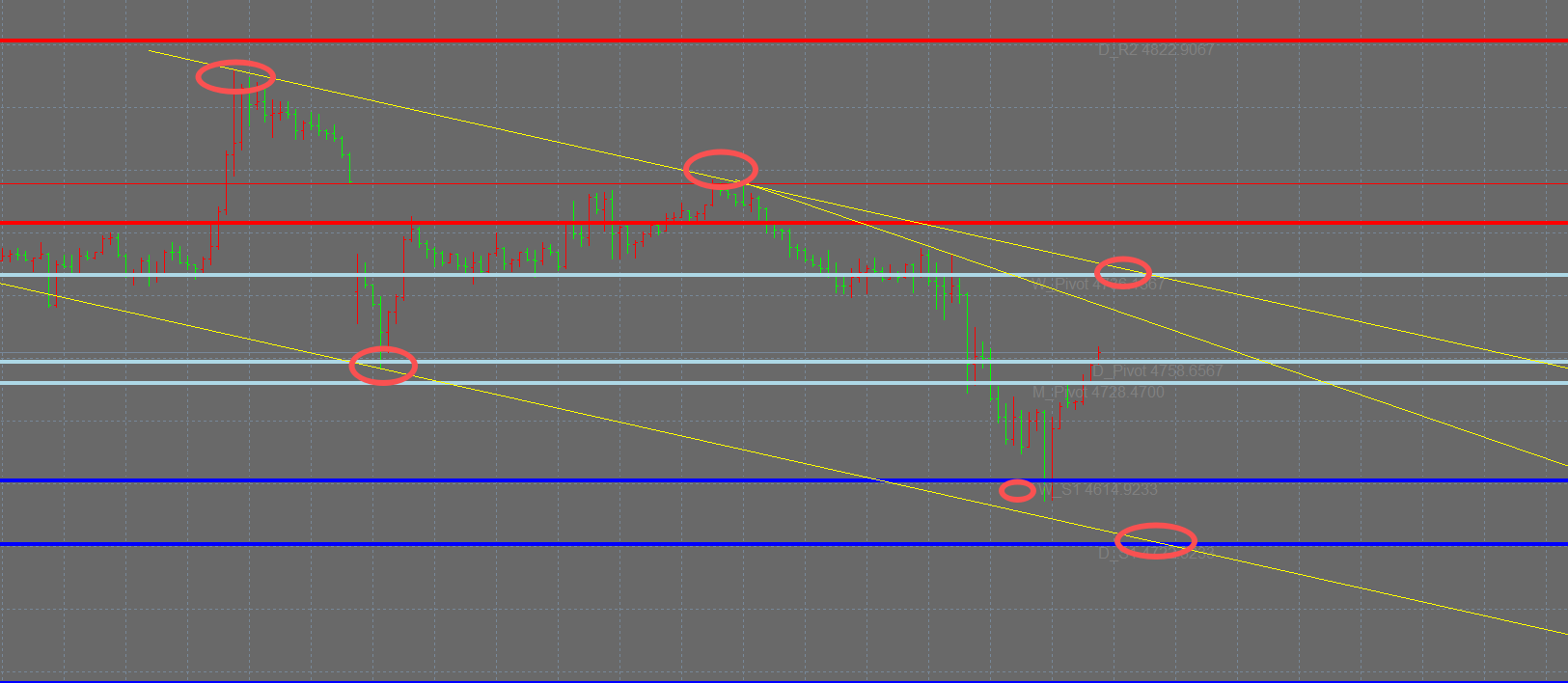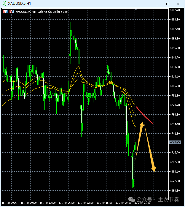 日线上收取一根小阴,并且跌破均线的支撑,那么反弹做空从技术面上是允许的,毕竟现在的消息面是越来越不被市场所信任,黄毛太能口嗨了。上方压力位于均线粘合的位置也就是4788-90附近,日内如果试探不破,还将继续回落,上破站稳则要回踩做多了。从H4来看,均线空头排列,反弹就是做空,毕竟凌晨出了新低,早间反抽理应做空,弱势还将延续,而凌晨的起跌点就在4750附近,而早间反弹恰好在4747附近,所以大家是可以直接先空看一个回落至4700在考虑是否做多!而稳健的可以等待H4的MA10位置也就是4770附近再空也行,这是日内的两个做空点位,一个看极弱,一个看震荡偏弱!重点依然关注欧盘的强弱,欧盘强,但不破4790,美盘则看冲高回落;欧盘弱,美盘前反弹继续空一次!