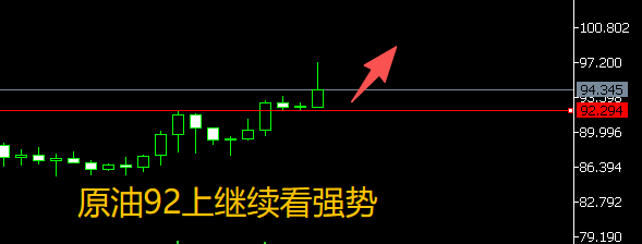 原油昨天整体走势震荡慢涨,还是偏强势的,虽然我们多单没进场,但思路很正确。日内继续看涨,点位上需要强势一点,给出93.5-93直接多,现价是94.3,大家对照合约去进场就好,防守放在91,看97-99!