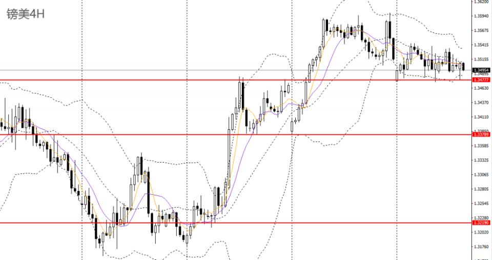 镑美周三收倒锤阳线,日线RSI小幅回落,4小时再度回踩1.3470一线支撑,且反弹无力,短线趋于震荡,可暂时观望。