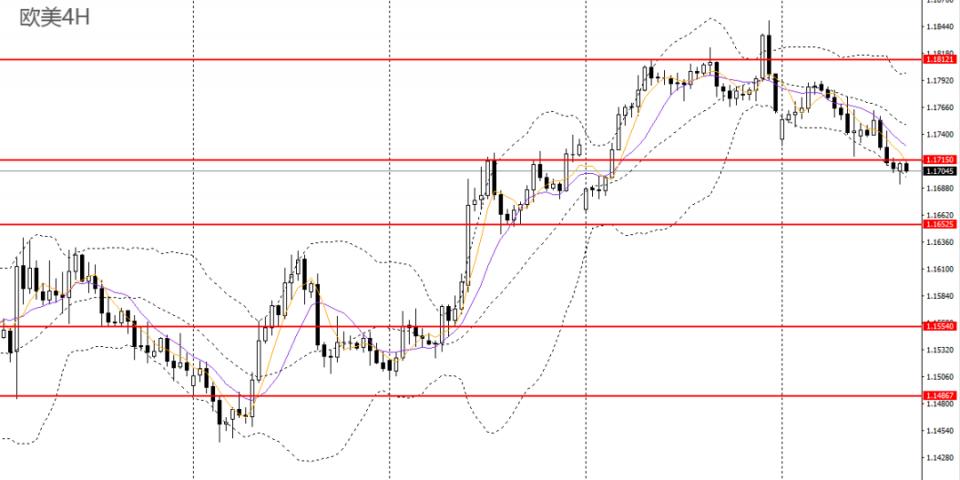 欧美周三再收长阴线,承压于10日均线,日线RSI跌至50附近,4小时下破1.17关口,空单可继续持有,如继续承压于1.17下方,后市可看空至1.1650一线。