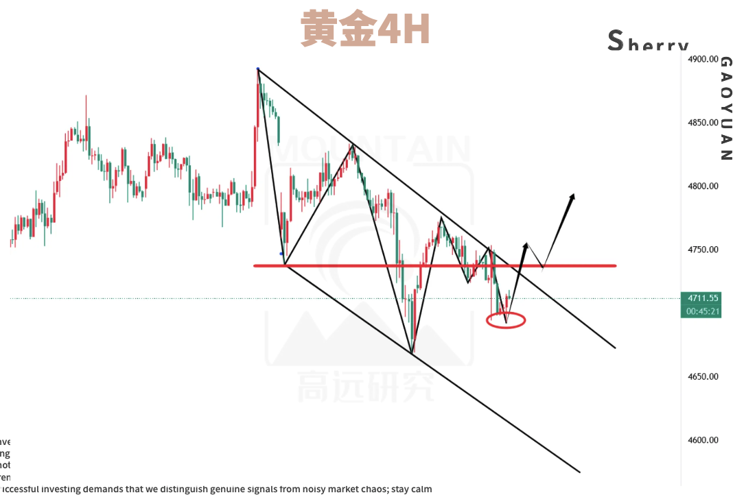 是,低点周内不仅有过4667,早上还跌破了4700,怎么看似乎都是要往下大跌的意思,可这始终是一种感觉,并不是既定事实,周二大跌160美金之后的次日,行情还收复了100美金失地呢,昨天虽然又跌了下来,但并非再是那种闪跌模式了,而是缓缓回调下跌,现在的黄金,不适合去拿一个位置去定义突破后会怎样,好比4700,它失守不代表会怎样,不然价格也不可能多次在百元大关横跳,所以不要轻易拿位置定义涨跌,这样会害了自己,洗盘太严重了,得看波动去定义才行。