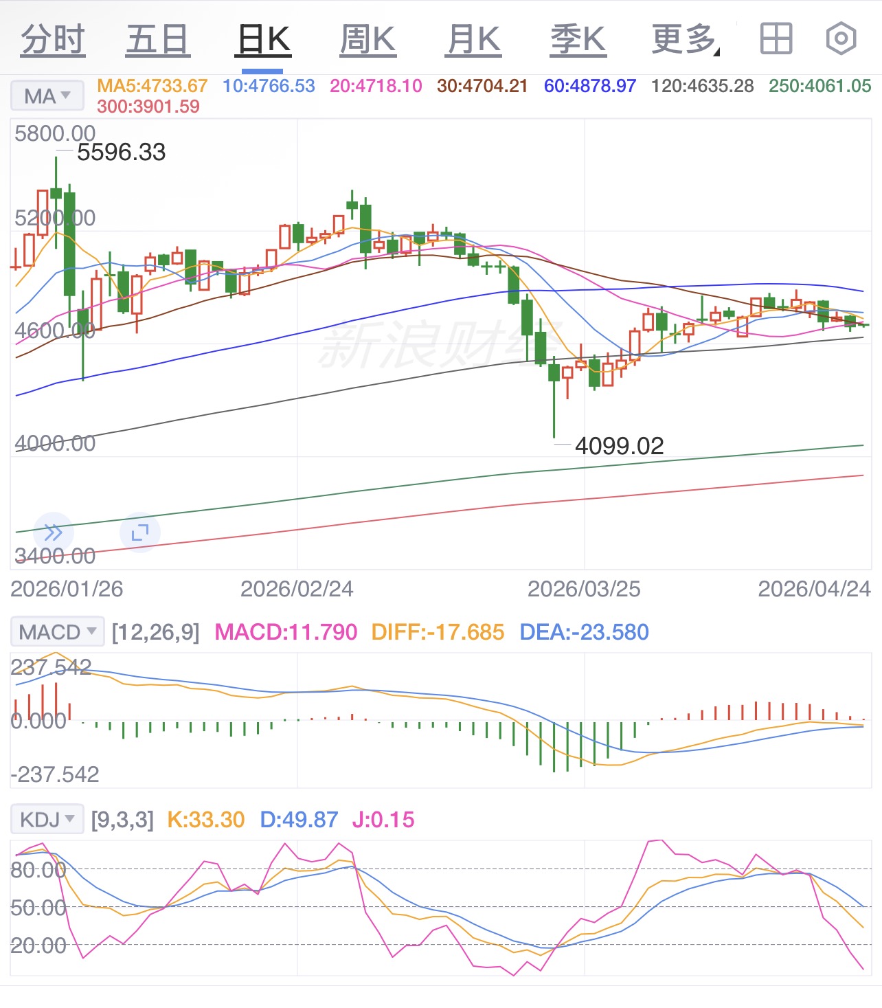 国际黄金行情,今天周五,黄金5日线以及10日线压制继续看跌,冲破5日线10日线看反弹,短期关注4720-15区域压力,下方短期支撑4670和4640,重点关注4600区域支撑,破位4600则有望中线下跌;但4600作为中期关键,破位前谨慎,随时面临拉高。