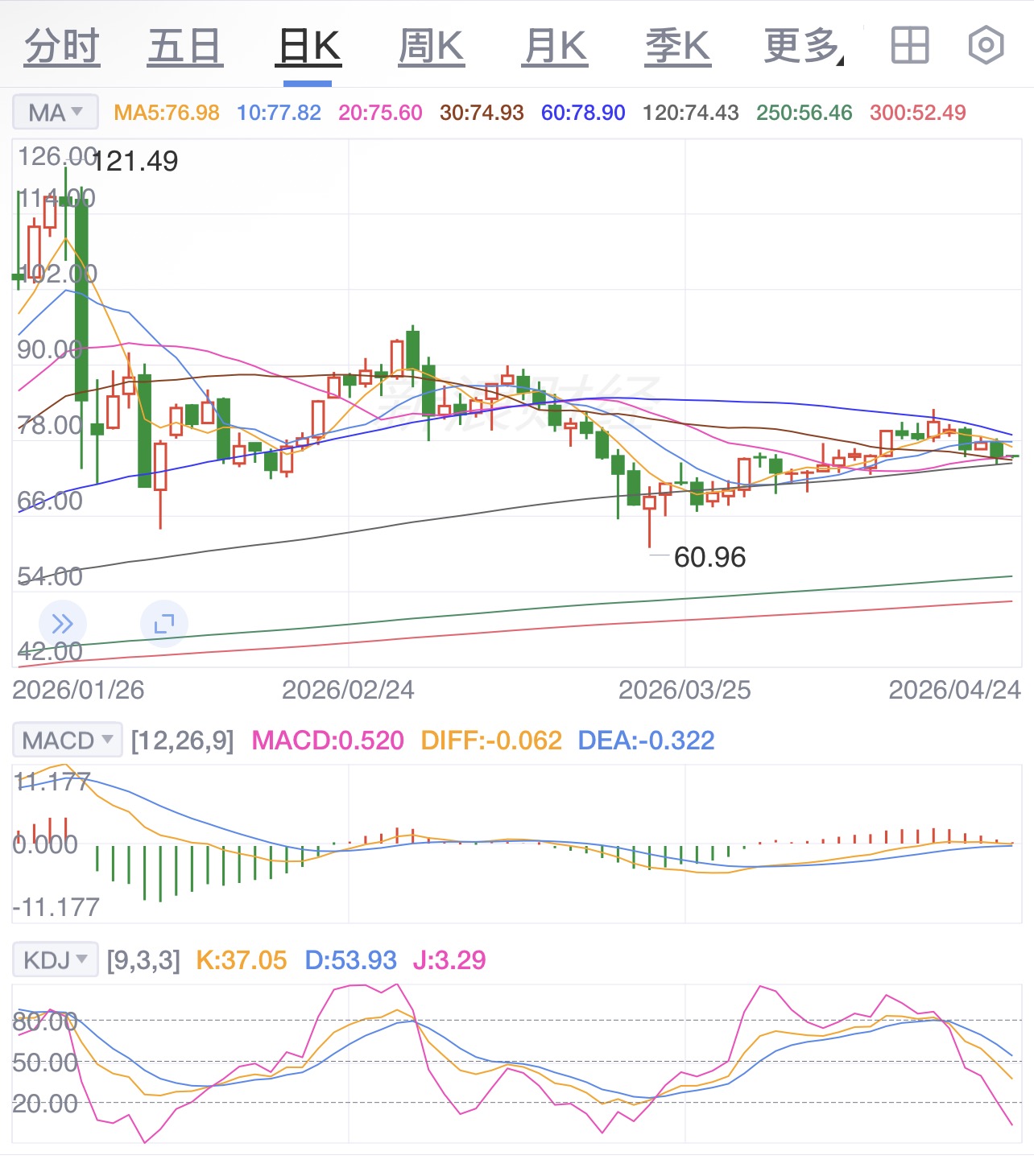 国际白银行情,和黄金一样也是看震荡下行,短期压力77美元,重点79-80美元以及82-83美元,下方74暂时支撑,重点支撑是70美元。