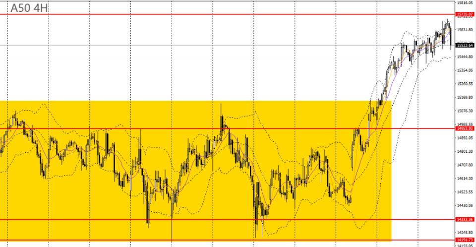 A50周四刺破前高,徘徊于5日均线附近,4小时触及关键压力15700遇阻回落,多单可暂时离场,下方首先关注15400附近支撑,如彻底跌破,后市有望回踩15000-15200一带。