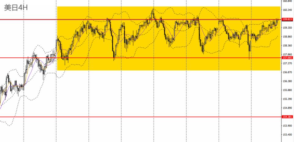 美日昨日继续小幅攀升,立于5日均线上方,日线RSI位于50之上,4小时触及159.80-160压力带,多单仍可持有,如彻底升破160,短线可上看至160.40附近。