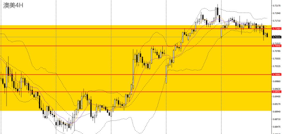 澳美昨日收长阴线,4小时彻底下破0.7140一线支撑,重回此前震荡区间,空单可继续持有,后市预计将下探0.71关口。