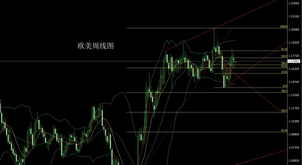 美市场上周小幅低开在1.17365的位置后行情先拉升,周线最高触及到了1.17911的位置后承压回落,周线最低给到了1.16680的位置后整理,周线最终收线在了1.17213的位置后,周线以一根下影线稍长于上影线的纺锤形态收线,而这样的形态收尾后,本周低开后,1.17200空止损1.17350,目标看1.16900和1.16800和1.16600.