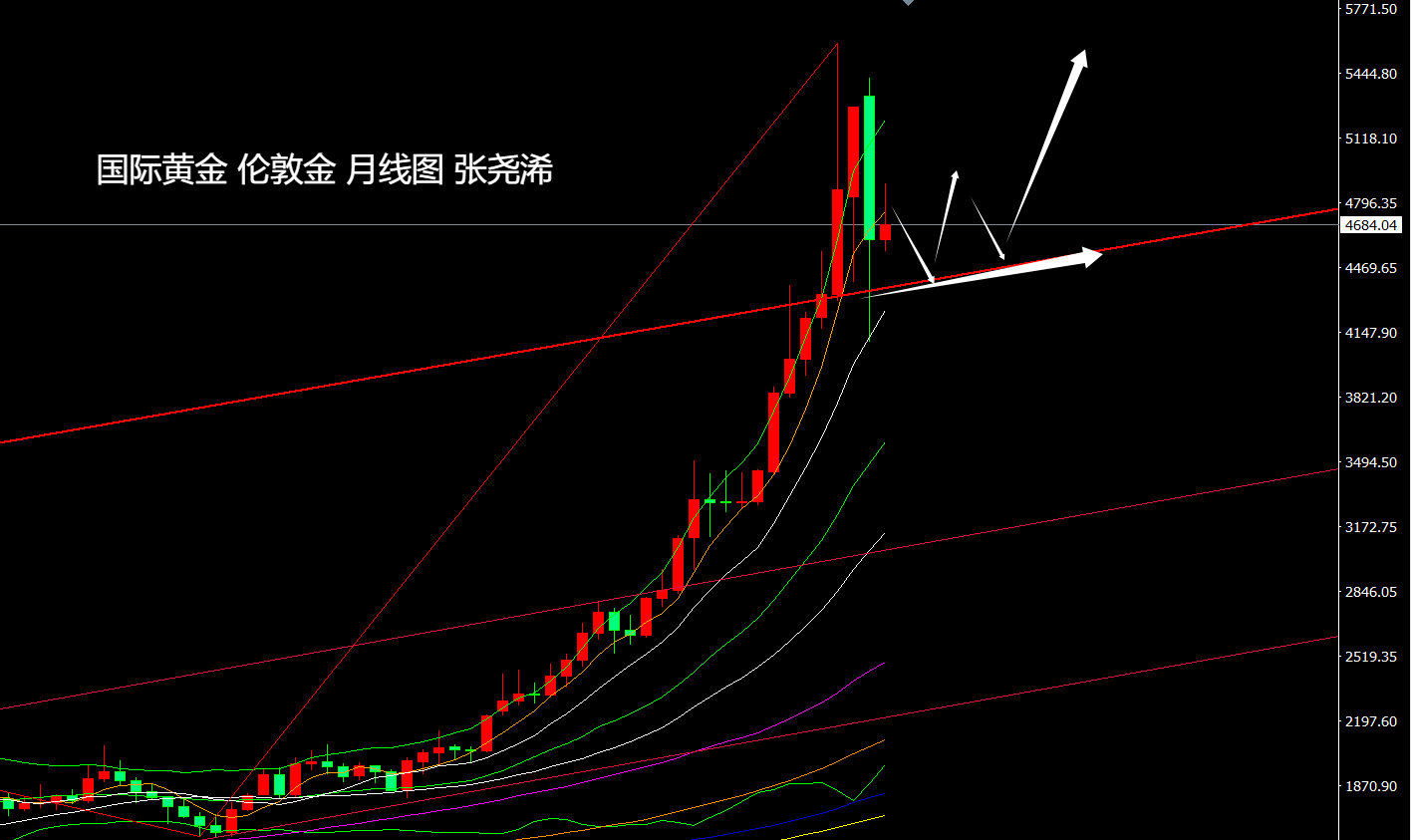 技术上,月线级别,金价3月收线在上升趋势线之上,维持着牛市前景,本月开盘也仍维持在此上升走盘,后市只要不跌破此趋势线下方收线,就仍将有新高的前景预期。