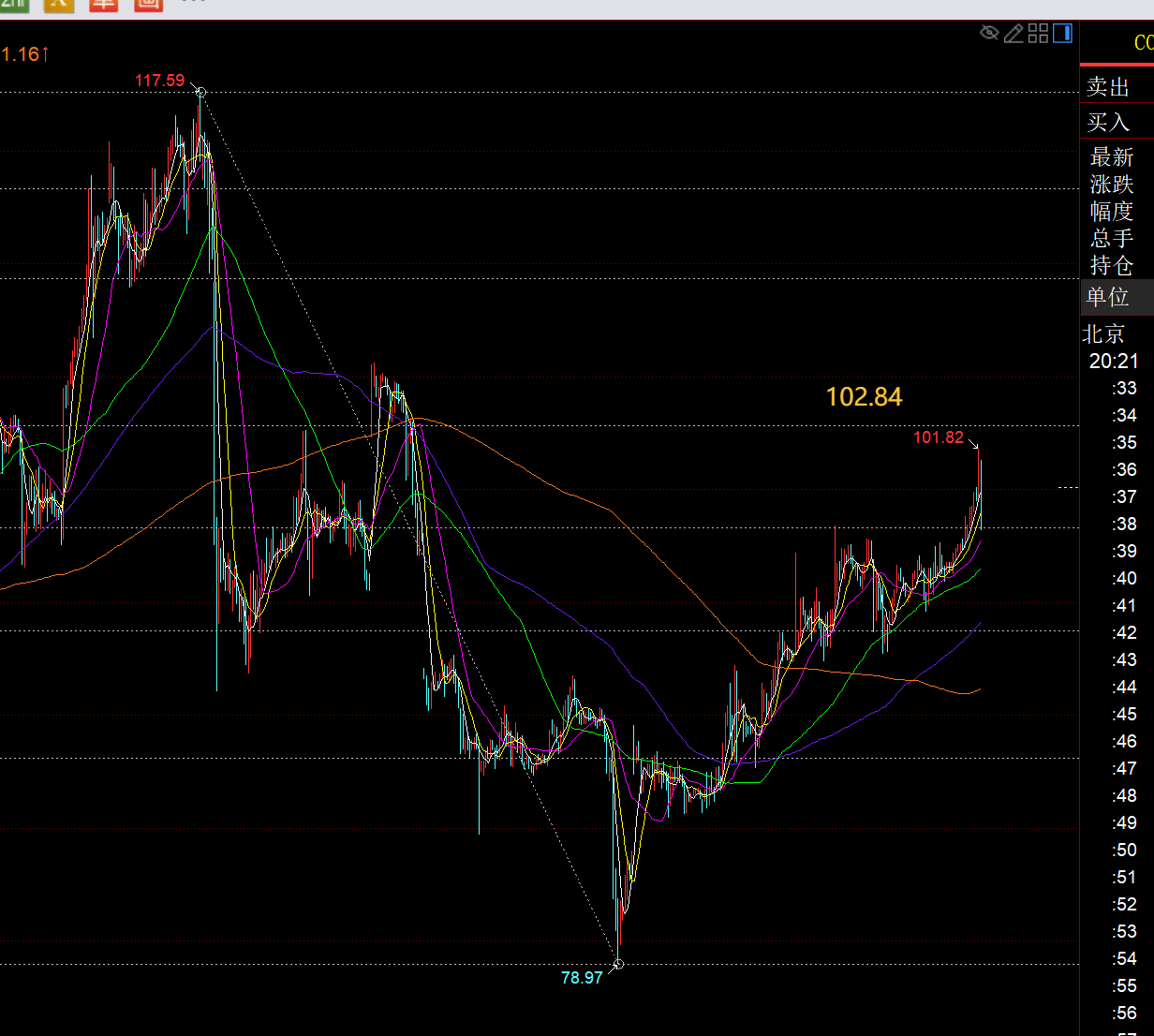 原油方面: 这一波反弹修正,也快试探关键618分割阻力102.84,参考周视频,只要未突破前高105.6,那么还是容易随时冲高回落的,98.3成为顶底支撑,这个小时下探再拉升,就是走二次上行;走完二次上行,再看压制回落,再失守98.3,日内高点就会出现;
