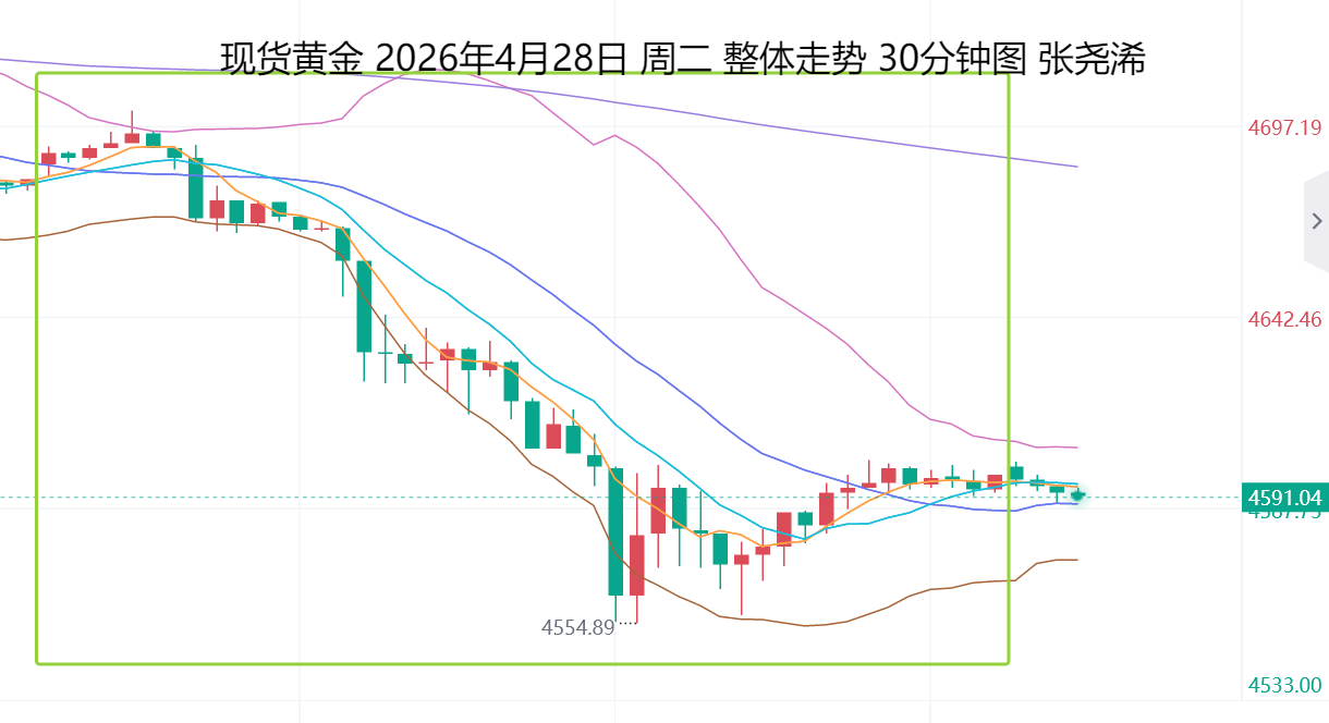 上交易日周二(4月28日):国际黄金回落收跌,仍受美伊局势影响,伊朗表示不认为战争已经结束,而继续向下远离100日均线,振幅相对前几日明显加大,空头力量也有所增强,虽然如期在触及144日均线支撑位置止跌反弹,但如不能重回100日均线上方,则后市仍有再度回撤至200日均线目标4300关口附近的预期。