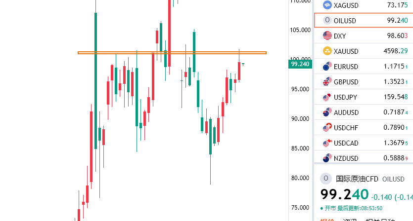 黄金接连探底关注企稳情况,原油高位震荡继续空!