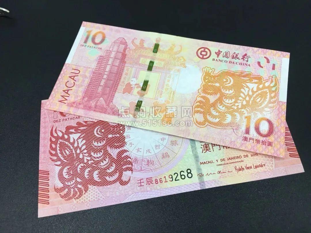 澳门在2012年发行的龙年纪念钞共一套两枚,并选用隔年发行的方式,至今首轮十二张生肖钞已经全部发行完毕。这也是世界第一套以生肖为主题并连续发行完毕的纪念钞。